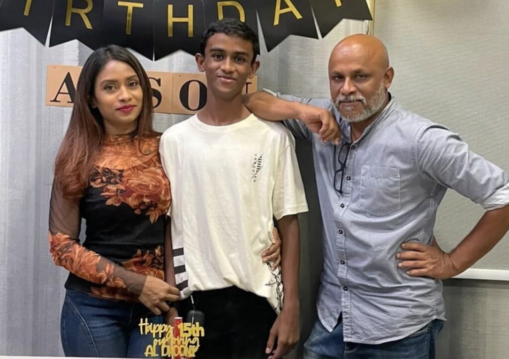 އަލްސަން، މަންމައާއި ބައްޕައާއެކު ނަގާފައިވާ ފޮޓޯއެއް