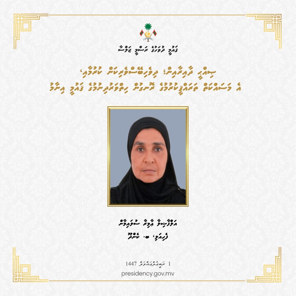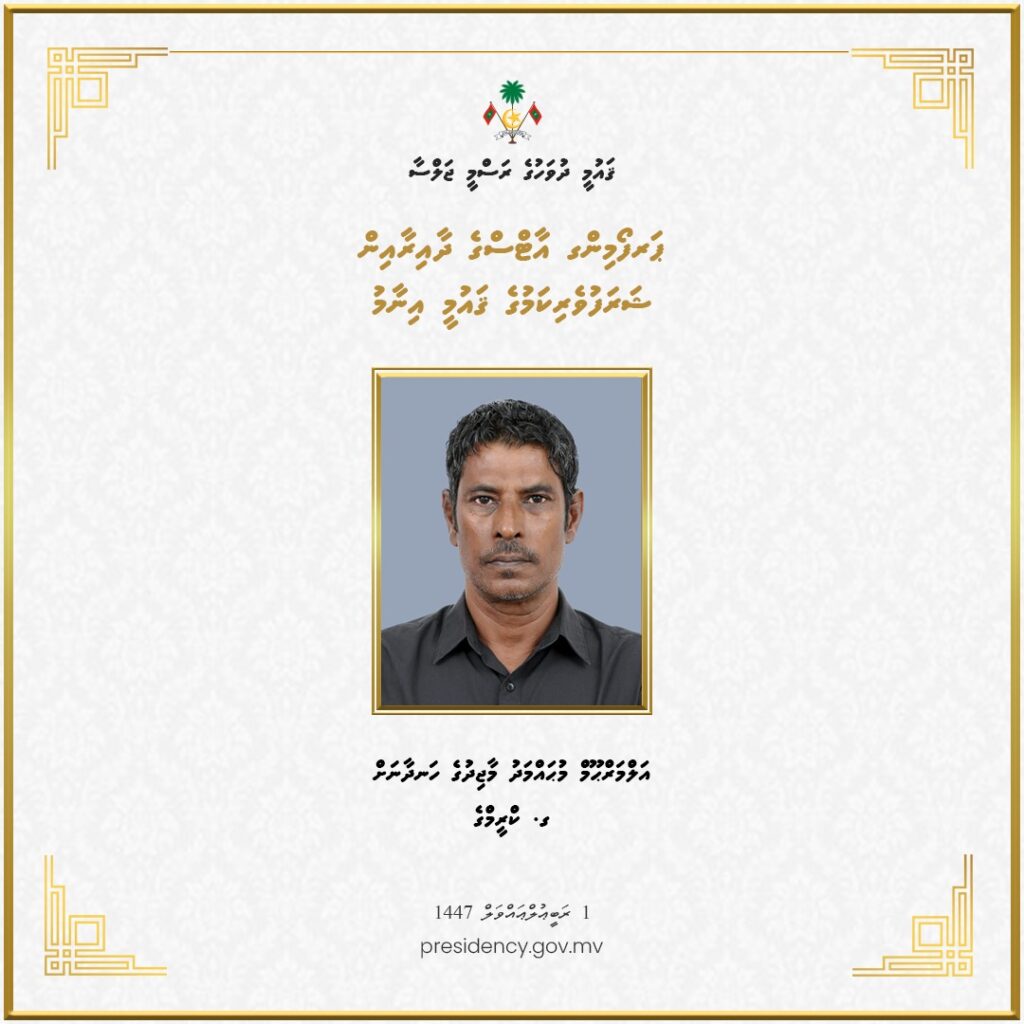 ޤައުމީ ދުވަހުގެ މުނާސަބަތުގައި ސަރުކާރުން ދެއްވުމަށް ހަމަޖެއްސެވި ޝަރަފުވެރިކަމުގެ ޤައުމީ އިނާމު 3 ބޭފުޅަކަށް، އަދި ހިތްވަރު ދިނުމުގެ ޤައުމީ އިނާމު 9 ބޭފުޅަކަށާއި ކުންފުންޏަކަށް މިއަހަރު ވަނީ ދެއްވައިފައެވެ. މި އިނާމުތައް ދެއްވީ، ޤައުމީ ދުވަހުގެ މުނާސަބަތުގައި މިއަދު ހެނދުނު ހއ. އުތީމުގައި ބޭއްވެވި ރަސްމީ ޖަލްސާގައި، ރައީސުލްޖުމްހޫރިއްޔާ ޑޮކްޓަރ މުޙައްމަދު މުޢިއްޒުއެވެ. މި އަހަރު ޝަރަފުވެރިކަމުގެ ޤައުމީ އިނާމު ލިބިވަޑައިގެންނެވި ތިން ބޭފުޅުންގެ ތެރެއިން އެއް ބޭފުޅަކަށް އިނާމު އެރުވީ، އެ ބޭފުޅާގެ ހަނދާނަށެވެ.