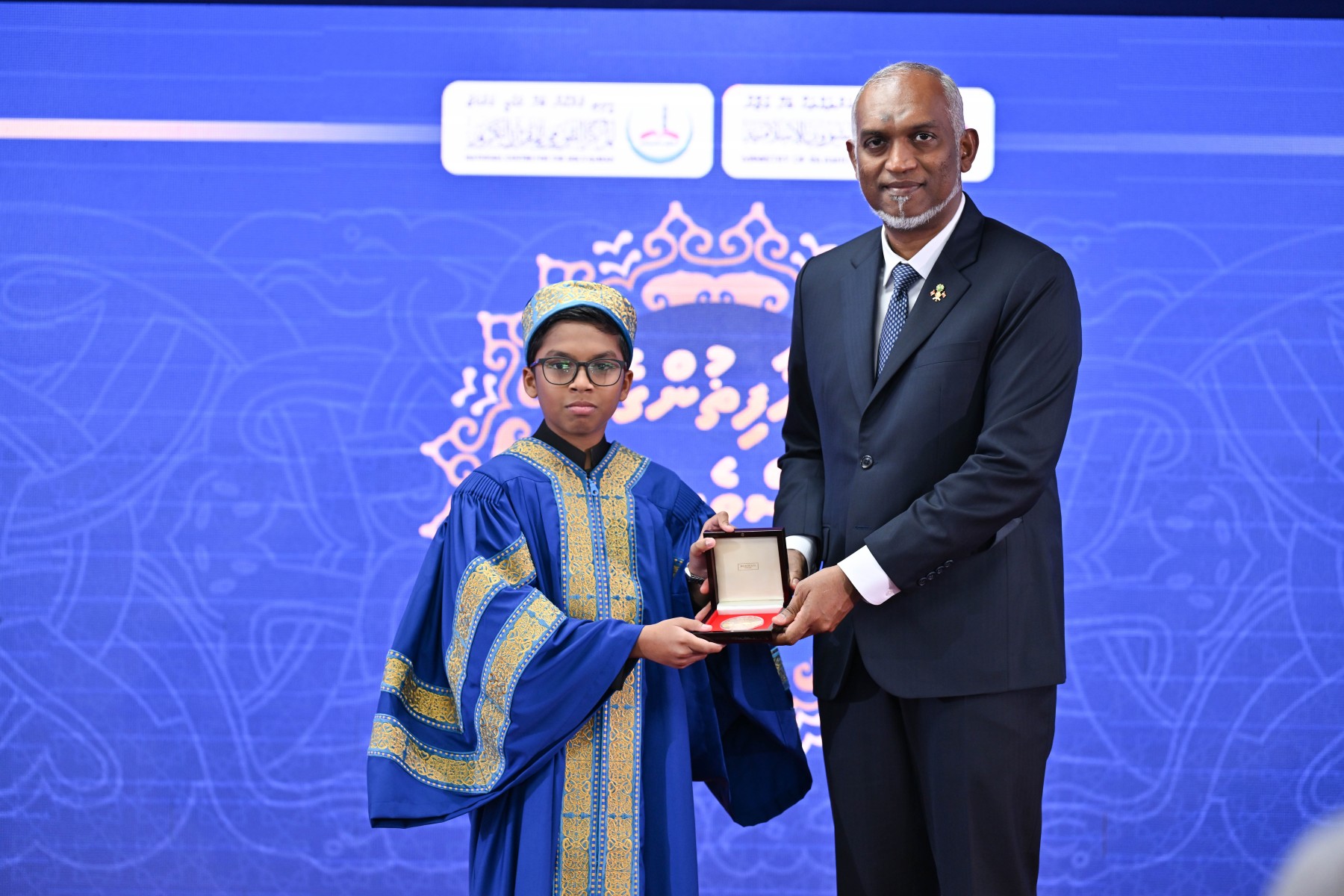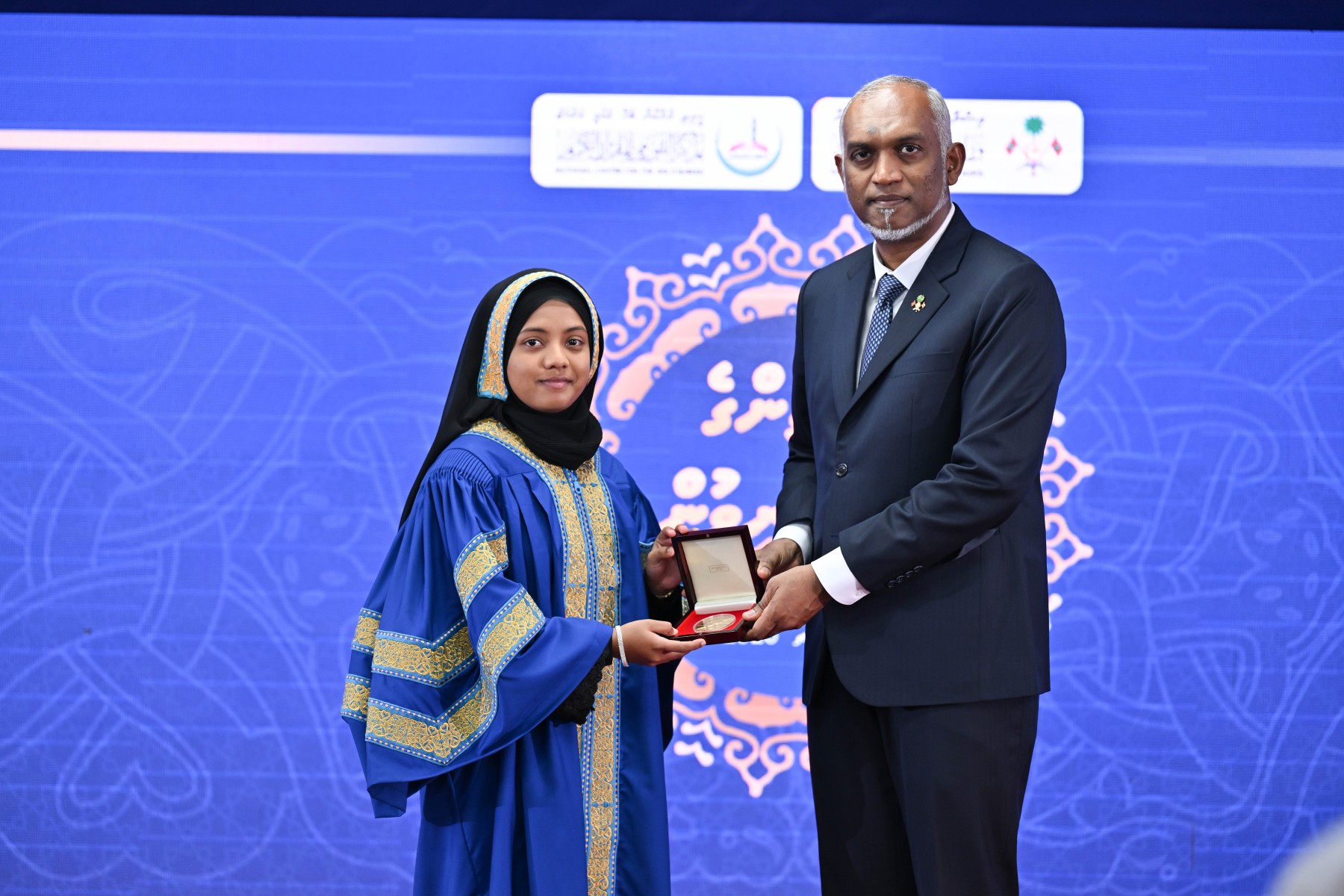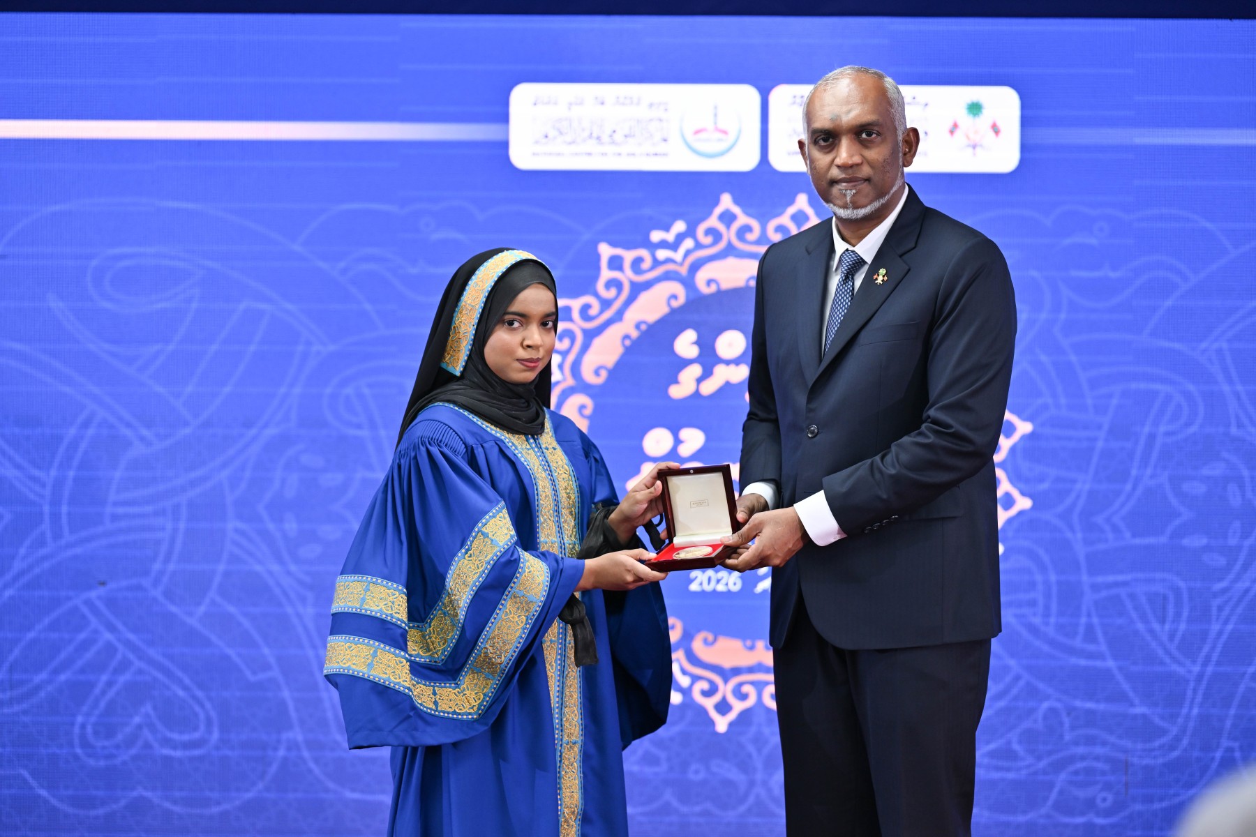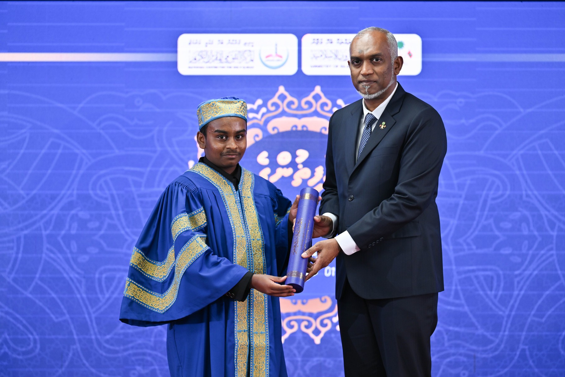 އިސްލާމީ މަރުކަޒުގެ ޖަލްސާކުރާ މާލަމުގައި ކުރިއަށްގެންދެވި ރަސްމިއްޔާތުގައި ރައީސުލްޖުމްހޫރިއްޔާ ވަނީ، އަލަށް ކީރިތި ޤުރުއާން ހިތުދަސްކޮށް ދަސްވެނިވި 31 ޙާފިޒުންނަށް ސަނަދާއި، ރައީސުލްޖުމްހޫރިއްޔާ ދެއްވާ އިނާމާއި މެޑަލް ހަވާލުކޮށްދެއްވާފައެވެ. މިއީ 1446 ވަނަ އަހަރުގެ ރަމަޟާން މަހުން ފެށިގެން 1447 ވަނަ އަހަރުގެ ރަމަޟާން މަހާ ހަމައަށް ކީރިތި ޤުރުއާން ހިތުދަސްކޮށް، ކީރިތި ޤުރުއާނާ ބެހޭ ޤައުމީ މަރުކަޒުން ކަނޑައަޅުއްވާފައިވާ ޝަރުޠުތަކާ އެއްގޮތަށް، ޙިފްޡު އިމްތިޙާނު ކޮމިޓީއަށް ކިޔައިދީ، އަލަށް ދަސްވެނިވި ޙާފިޒުންނެވެ. މި އަހަރު ދަސްވެނިވެފައިވަނީ، އަންހެން 19 ޙާފިޒުންނާއި، ފިރިހެން 12 ޙާފިޒުންނެވެ. އެއީ 12 އަހަރާއި 21 އަހަރާ ދެމެދުގެ 23 ޙާފިޒުންނާއި، 21 އަހަރުން މަތީގެ 8 ޙާފިޒުންނެވެ. މިރަސްމިއްޔާތުގައި ރައީސުލްޖުމްހޫރިއްޔާ ވަނީ، އިތުރު 18 ޙާފިޒުންނަށް ރައީސުލްޖުމްހޫރިއްޔާ ދެއްވާ އިނާމާއި މެޑަލް ހަވާލުކޮށްދެއްވާފައެވެ. މިއީ 3 ސެޕްޓެމްބަރު 2024 އިން 18 މާރިޗު 2025 ގެ ނިޔަލަށް ކީރިތި ޤުރުއާން ހިތުދަސްކޮށް، ކީރިތި ޤުރުއާނާ ބެހޭ ޤައުމީ މަރުކަޒުން ކަނޑައަޅުއްވާފައިވާ ޝަރުޠުތަކާ އެއްގޮތަށް، ޙިފްޡު އިމްތިޙާނު ކޮމިޓީއަށް ކިޔައިދީ ސަނަދު ޙާޞިލުކޮށްފައިވާ ޙާފިޒުންނެވެ.