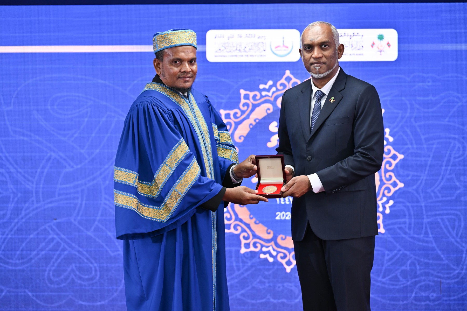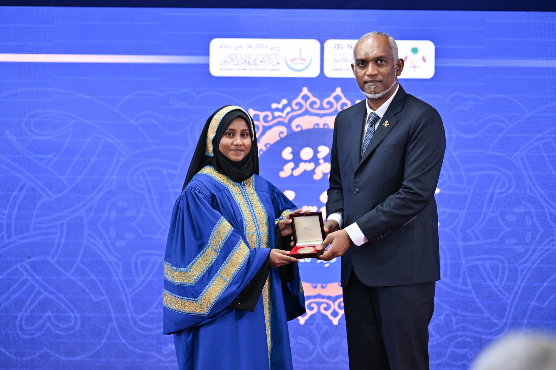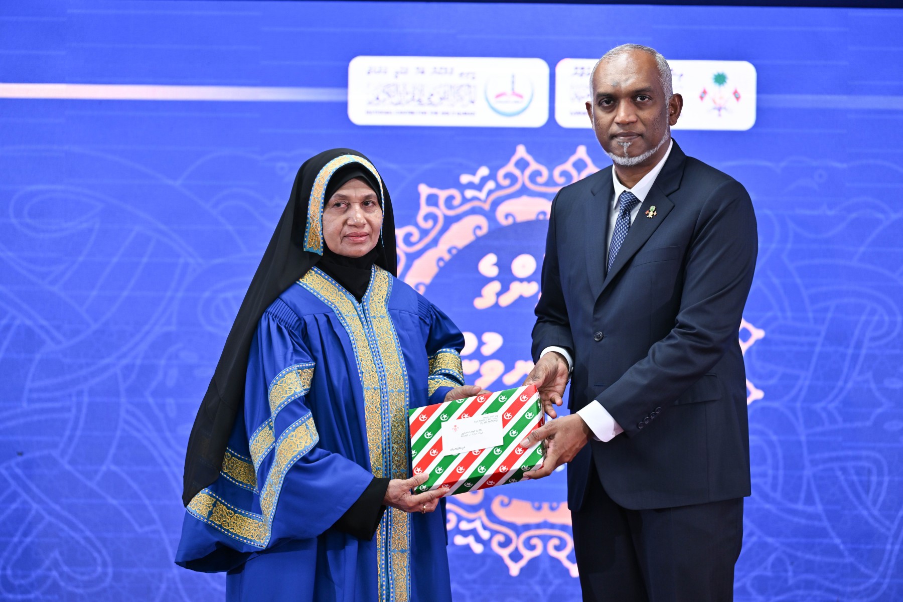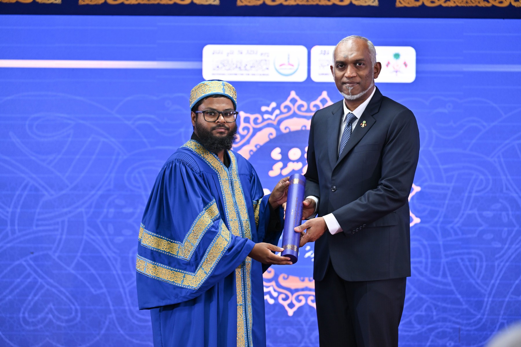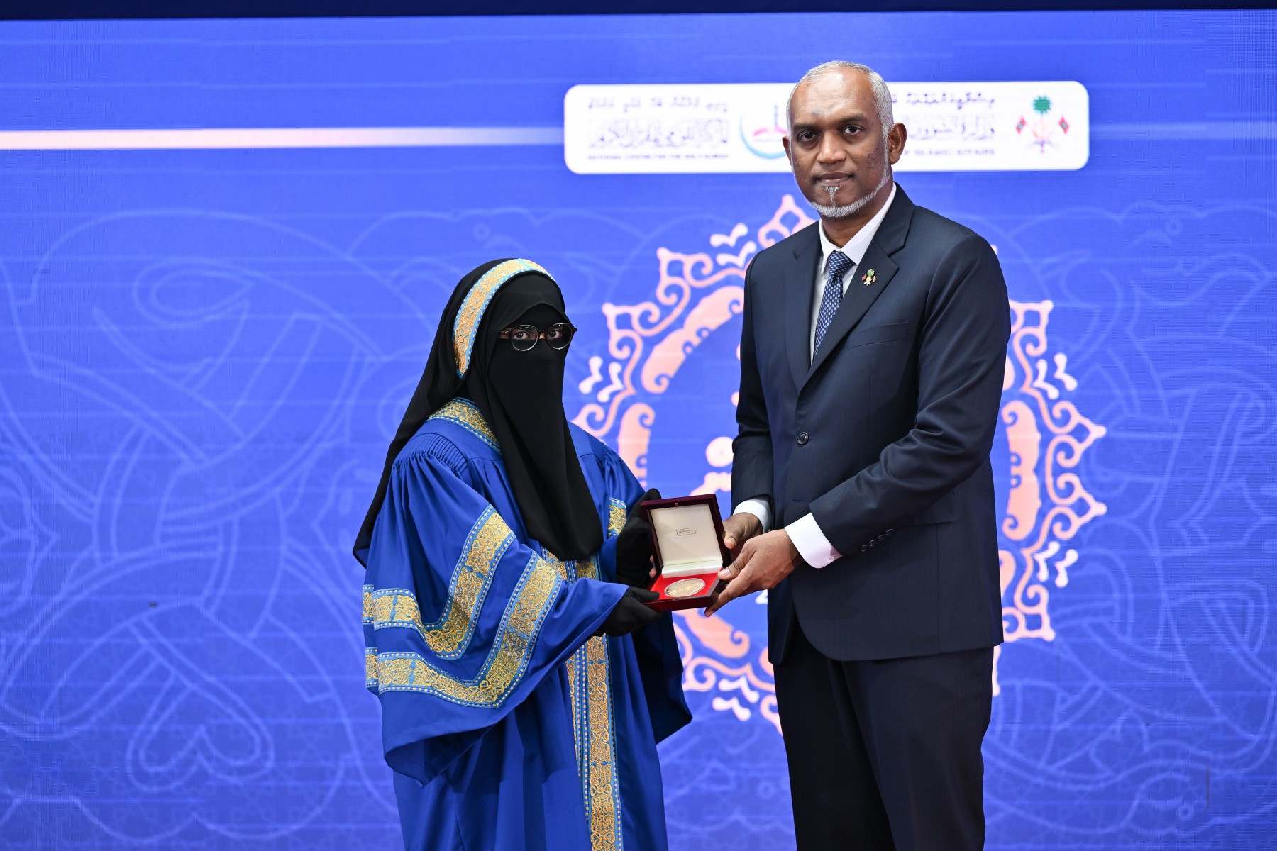 އިސްލާމީ މަރުކަޒުގެ ޖަލްސާކުރާ މާލަމުގައި ކުރިއަށްގެންދެވި ރަސްމިއްޔާތުގައި ރައީސުލްޖުމްހޫރިއްޔާ ވަނީ، އަލަށް ކީރިތި ޤުރުއާން ހިތުދަސްކޮށް ދަސްވެނިވި 31 ޙާފިޒުންނަށް ސަނަދާއި، ރައީސުލްޖުމްހޫރިއްޔާ ދެއްވާ އިނާމާއި މެޑަލް ހަވާލުކޮށްދެއްވާފައެވެ. މިއީ 1446 ވަނަ އަހަރުގެ ރަމަޟާން މަހުން ފެށިގެން 1447 ވަނަ އަހަރުގެ ރަމަޟާން މަހާ ހަމައަށް ކީރިތި ޤުރުއާން ހިތުދަސްކޮށް، ކީރިތި ޤުރުއާނާ ބެހޭ ޤައުމީ މަރުކަޒުން ކަނޑައަޅުއްވާފައިވާ ޝަރުޠުތަކާ އެއްގޮތަށް، ޙިފްޡު އިމްތިޙާނު ކޮމިޓީއަށް ކިޔައިދީ، އަލަށް ދަސްވެނިވި ޙާފިޒުންނެވެ. މި އަހަރު ދަސްވެނިވެފައިވަނީ، އަންހެން 19 ޙާފިޒުންނާއި، ފިރިހެން 12 ޙާފިޒުންނެވެ. އެއީ 12 އަހަރާއި 21 އަހަރާ ދެމެދުގެ 23 ޙާފިޒުންނާއި، 21 އަހަރުން މަތީގެ 8 ޙާފިޒުންނެވެ. މިރަސްމިއްޔާތުގައި ރައީސުލްޖުމްހޫރިއްޔާ ވަނީ، އިތުރު 18 ޙާފިޒުންނަށް ރައީސުލްޖުމްހޫރިއްޔާ ދެއްވާ އިނާމާއި މެޑަލް ހަވާލުކޮށްދެއްވާފައެވެ. މިއީ 3 ސެޕްޓެމްބަރު 2024 އިން 18 މާރިޗު 2025 ގެ ނިޔަލަށް ކީރިތި ޤުރުއާން ހިތުދަސްކޮށް، ކީރިތި ޤުރުއާނާ ބެހޭ ޤައުމީ މަރުކަޒުން ކަނޑައަޅުއްވާފައިވާ ޝަރުޠުތަކާ އެއްގޮތަށް، ޙިފްޡު އިމްތިޙާނު ކޮމިޓީއަށް ކިޔައިދީ ސަނަދު ޙާޞިލުކޮށްފައިވާ ޙާފިޒުންނެވެ.