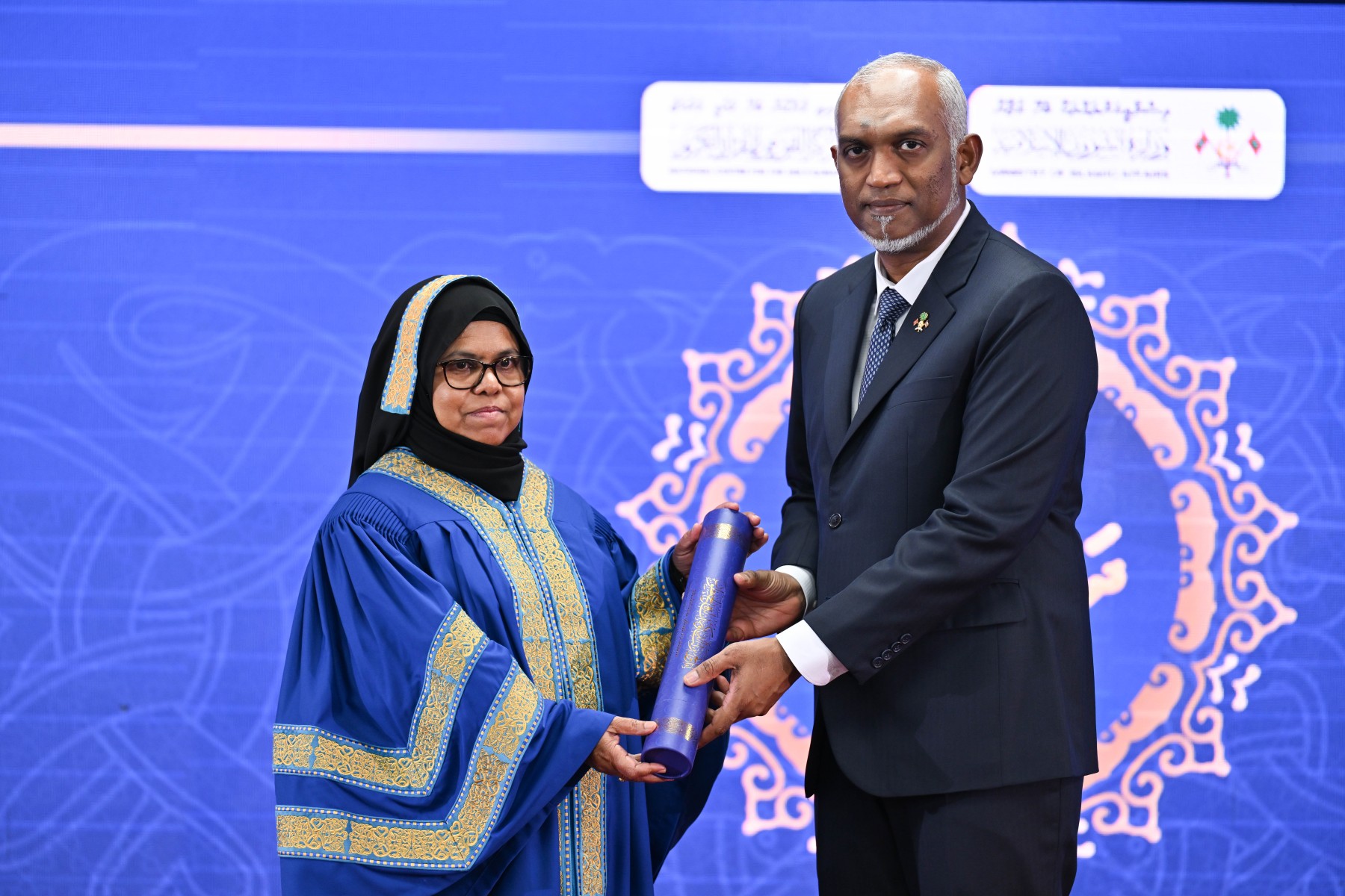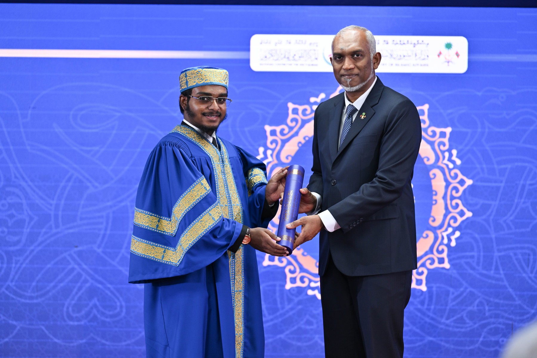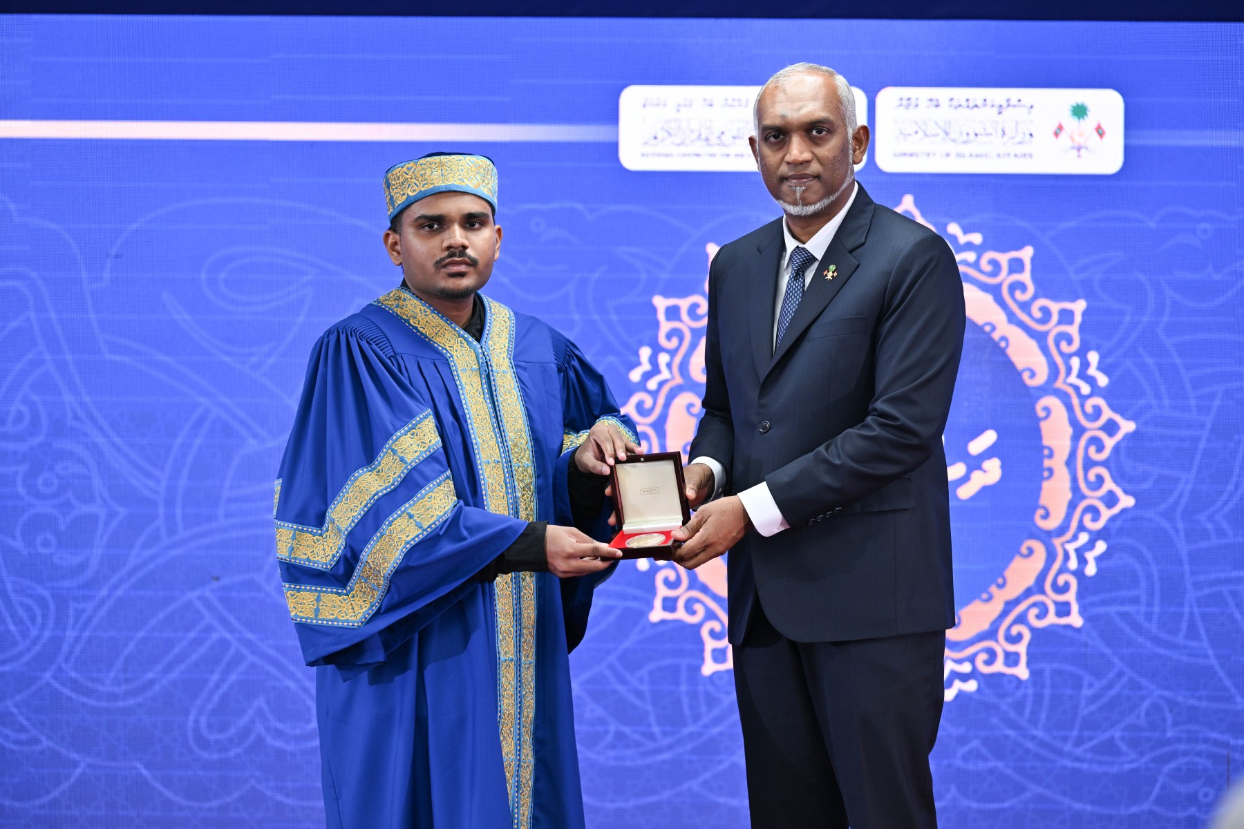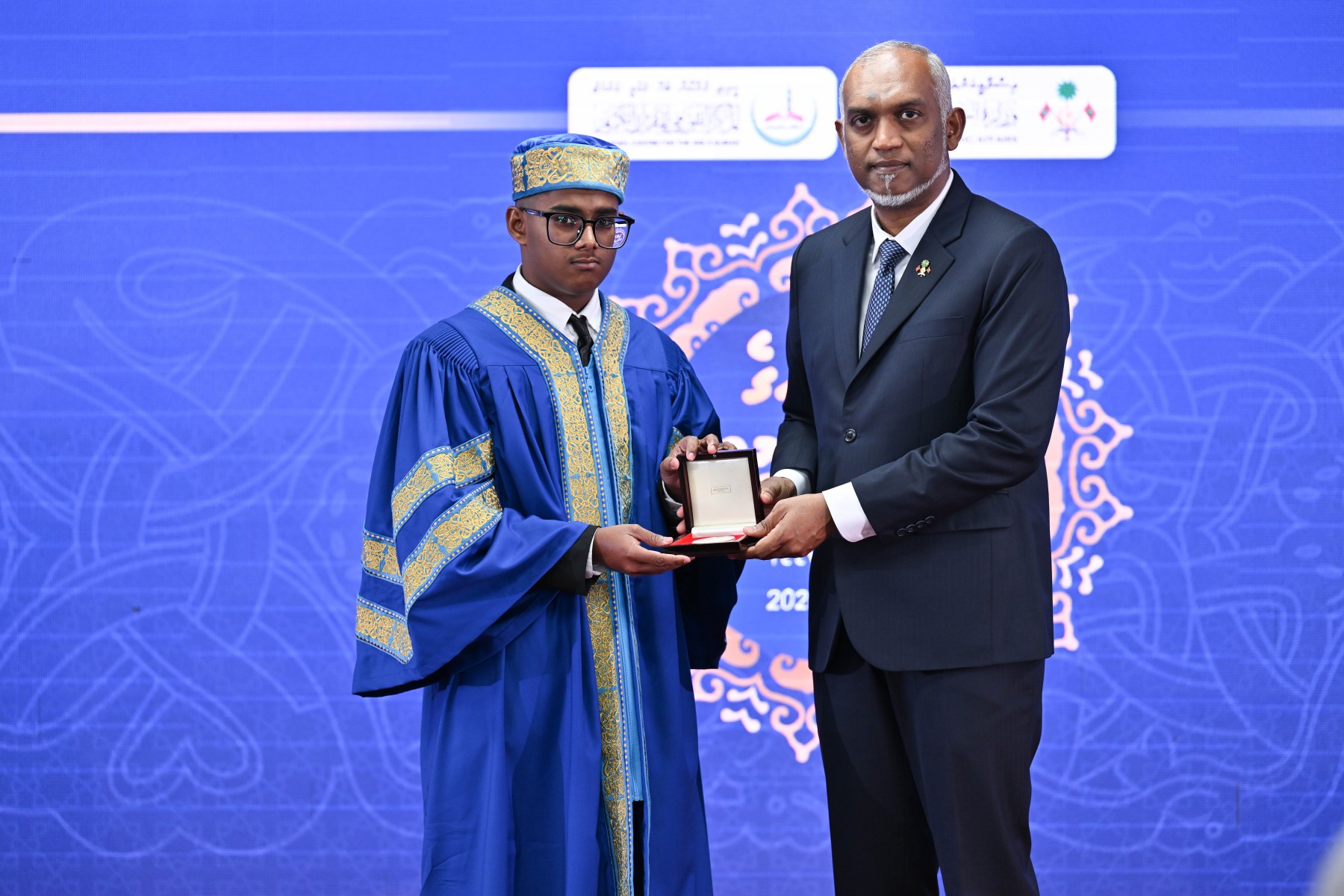 އިސްލާމީ މަރުކަޒުގެ ޖަލްސާކުރާ މާލަމުގައި ކުރިއަށްގެންދެވި ރަސްމިއްޔާތުގައި ރައީސުލްޖުމްހޫރިއްޔާ ވަނީ، އަލަށް ކީރިތި ޤުރުއާން ހިތުދަސްކޮށް ދަސްވެނިވި 31 ޙާފިޒުންނަށް ސަނަދާއި، ރައީސުލްޖުމްހޫރިއްޔާ ދެއްވާ އިނާމާއި މެޑަލް ހަވާލުކޮށްދެއްވާފައެވެ. މިއީ 1446 ވަނަ އަހަރުގެ ރަމަޟާން މަހުން ފެށިގެން 1447 ވަނަ އަހަރުގެ ރަމަޟާން މަހާ ހަމައަށް ކީރިތި ޤުރުއާން ހިތުދަސްކޮށް، ކީރިތި ޤުރުއާނާ ބެހޭ ޤައުމީ މަރުކަޒުން ކަނޑައަޅުއްވާފައިވާ ޝަރުޠުތަކާ އެއްގޮތަށް، ޙިފްޡު އިމްތިޙާނު ކޮމިޓީއަށް ކިޔައިދީ، އަލަށް ދަސްވެނިވި ޙާފިޒުންނެވެ. މި އަހަރު ދަސްވެނިވެފައިވަނީ، އަންހެން 19 ޙާފިޒުންނާއި، ފިރިހެން 12 ޙާފިޒުންނެވެ. އެއީ 12 އަހަރާއި 21 އަހަރާ ދެމެދުގެ 23 ޙާފިޒުންނާއި، 21 އަހަރުން މަތީގެ 8 ޙާފިޒުންނެވެ. މިރަސްމިއްޔާތުގައި ރައީސުލްޖުމްހޫރިއްޔާ ވަނީ، އިތުރު 18 ޙާފިޒުންނަށް ރައީސުލްޖުމްހޫރިއްޔާ ދެއްވާ އިނާމާއި މެޑަލް ހަވާލުކޮށްދެއްވާފައެވެ. މިއީ 3 ސެޕްޓެމްބަރު 2024 އިން 18 މާރިޗު 2025 ގެ ނިޔަލަށް ކީރިތި ޤުރުއާން ހިތުދަސްކޮށް، ކީރިތި ޤުރުއާނާ ބެހޭ ޤައުމީ މަރުކަޒުން ކަނޑައަޅުއްވާފައިވާ ޝަރުޠުތަކާ އެއްގޮތަށް، ޙިފްޡު އިމްތިޙާނު ކޮމިޓީއަށް ކިޔައިދީ ސަނަދު ޙާޞިލުކޮށްފައިވާ ޙާފިޒުންނެވެ.