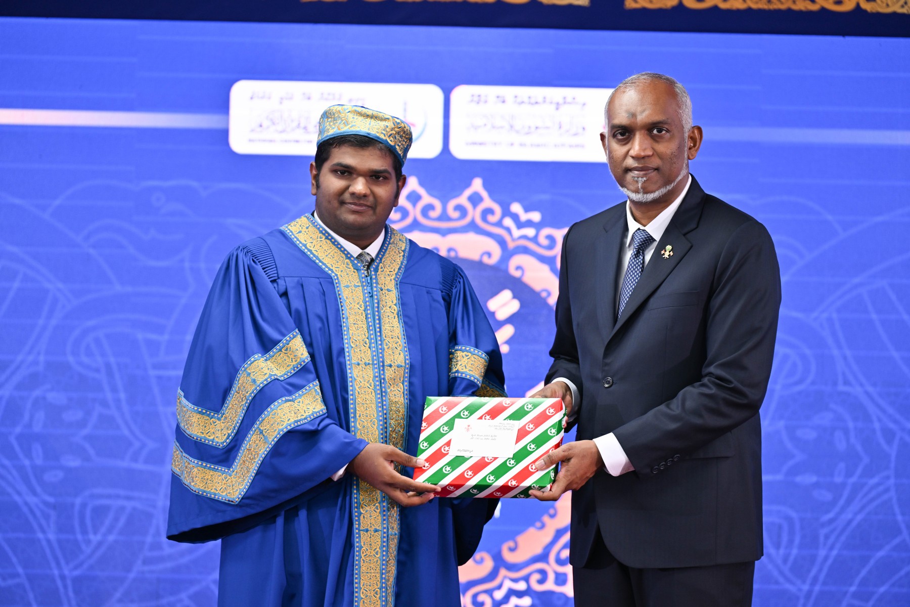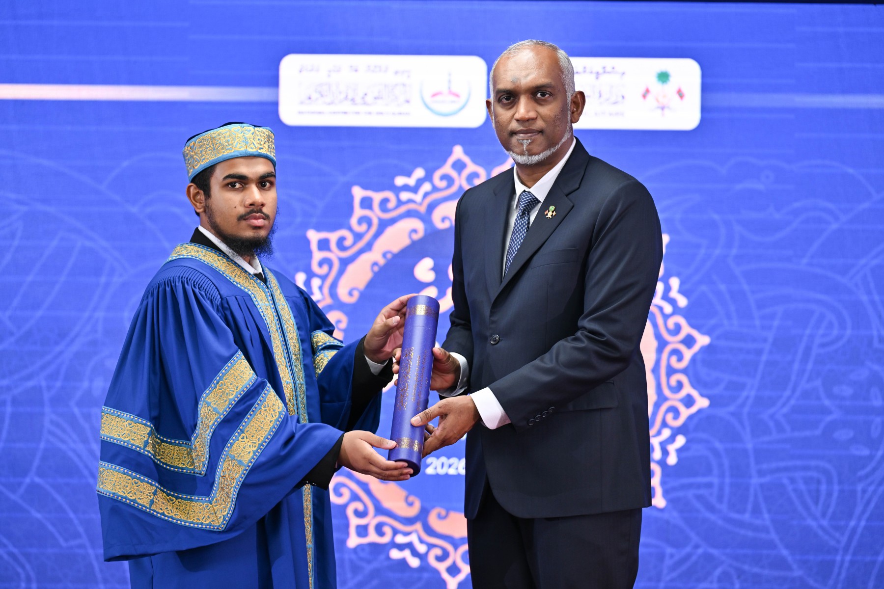 އިސްލާމީ މަރުކަޒުގެ ޖަލްސާކުރާ މާލަމުގައި ކުރިއަށްގެންދެވި ރަސްމިއްޔާތުގައި ރައީސުލްޖުމްހޫރިއްޔާ ވަނީ، އަލަށް ކީރިތި ޤުރުއާން ހިތުދަސްކޮށް ދަސްވެނިވި 31 ޙާފިޒުންނަށް ސަނަދާއި، ރައީސުލްޖުމްހޫރިއްޔާ ދެއްވާ އިނާމާއި މެޑަލް ހަވާލުކޮށްދެއްވާފައެވެ. މިއީ 1446 ވަނަ އަހަރުގެ ރަމަޟާން މަހުން ފެށިގެން 1447 ވަނަ އަހަރުގެ ރަމަޟާން މަހާ ހަމައަށް ކީރިތި ޤުރުއާން ހިތުދަސްކޮށް، ކީރިތި ޤުރުއާނާ ބެހޭ ޤައުމީ މަރުކަޒުން ކަނޑައަޅުއްވާފައިވާ ޝަރުޠުތަކާ އެއްގޮތަށް، ޙިފްޡު އިމްތިޙާނު ކޮމިޓީއަށް ކިޔައިދީ، އަލަށް ދަސްވެނިވި ޙާފިޒުންނެވެ. މި އަހަރު ދަސްވެނިވެފައިވަނީ، އަންހެން 19 ޙާފިޒުންނާއި، ފިރިހެން 12 ޙާފިޒުންނެވެ. އެއީ 12 އަހަރާއި 21 އަހަރާ ދެމެދުގެ 23 ޙާފިޒުންނާއި، 21 އަހަރުން މަތީގެ 8 ޙާފިޒުންނެވެ. މިރަސްމިއްޔާތުގައި ރައީސުލްޖުމްހޫރިއްޔާ ވަނީ، އިތުރު 18 ޙާފިޒުންނަށް ރައީސުލްޖުމްހޫރިއްޔާ ދެއްވާ އިނާމާއި މެޑަލް ހަވާލުކޮށްދެއްވާފައެވެ. މިއީ 3 ސެޕްޓެމްބަރު 2024 އިން 18 މާރިޗު 2025 ގެ ނިޔަލަށް ކީރިތި ޤުރުއާން ހިތުދަސްކޮށް، ކީރިތި ޤުރުއާނާ ބެހޭ ޤައުމީ މަރުކަޒުން ކަނޑައަޅުއްވާފައިވާ ޝަރުޠުތަކާ އެއްގޮތަށް، ޙިފްޡު އިމްތިޙާނު ކޮމިޓީއަށް ކިޔައިދީ ސަނަދު ޙާޞިލުކޮށްފައިވާ ޙާފިޒުންނެވެ.