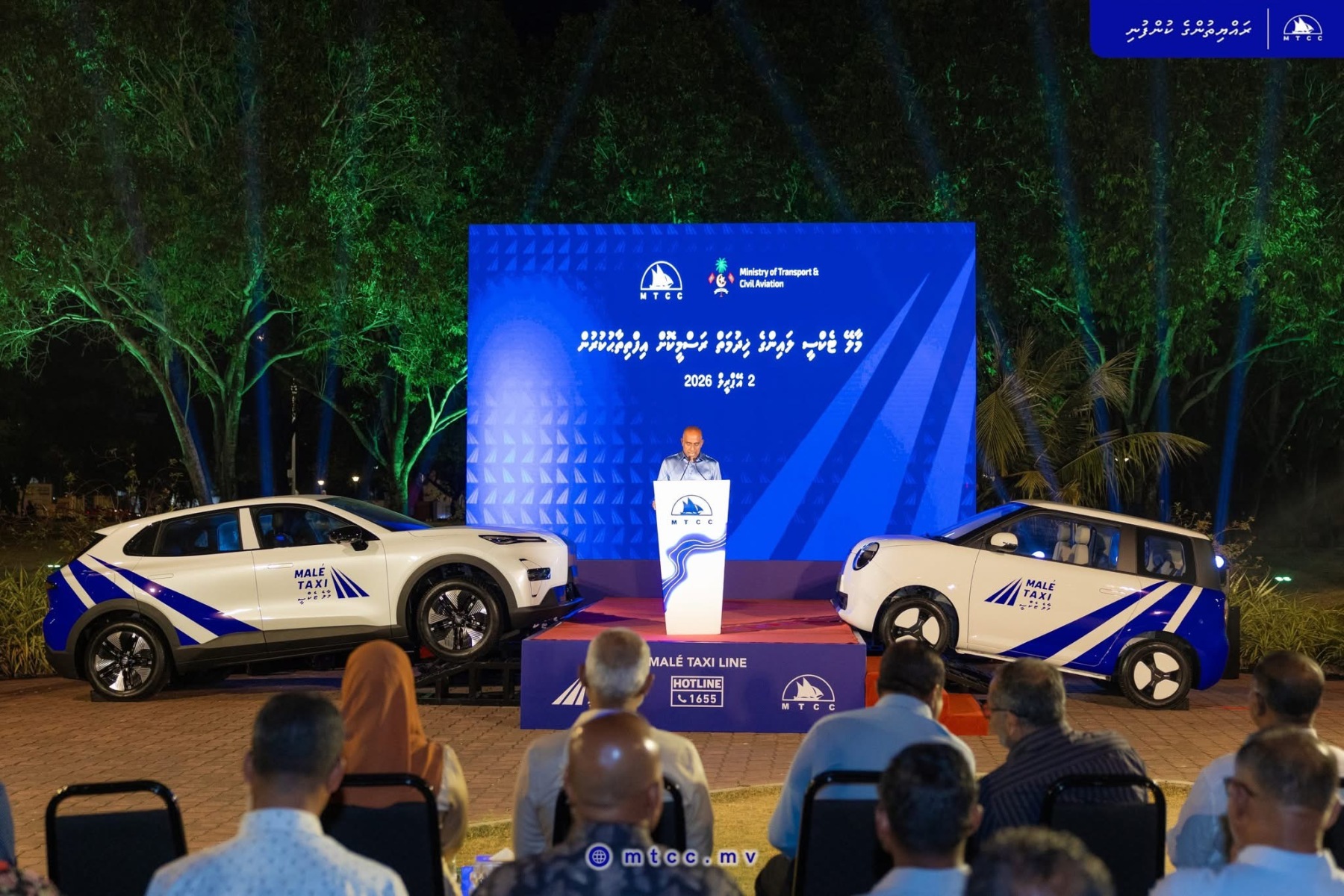ރައީސުލްޖުމްހޫރިއްޔާ ޑޮކްޓަރ މުޙައްމަދު މުޢިއްޒު، މާލޭ ޓެކްސީ ލައިންގެ ޚިދުމަތް އިފުތިތާހުކޮށްދެއްވައިފިއެވެ. މާލޭ ޓެކްސީ ލައިނަކީ، މާލޭ ސަރަޙައްދަށް ކުރިމަތިވެފައިވާ ޓެކްސީގެ ދަތިކަމަށް ވަށާޖެހޭ ޙައްލެއް ހޯއްދަވައިދެއްވުމުގެ މަޤުޞަދުގައި، ރައީސުލްޖުމްހޫރިއްޔާގެ އިސްނެންގެވުމުގެ މަތީން، ފަރުމާކުރެއްވި މަސައްކަތެކެވެ. މިރެއިން ފެށިގެން 24 ގަޑިއިރު ޚިދުމަތް ލިބޭގޮތަށް ފެށި މި ޚިދުމަތުގައި ބޭނުންކުރާނީ، ތިމާވެއްޓާ ރަޙުމަތްތެރި، 150 އިލެކްޓްރޯނިކް ވެހިކަލް (އީ.ވީ) އެވެ. މީގެ ތެރޭގައި، މާލޭގެ ހަނި މަގުތަކަށް ޚާއްޞަ ކުދި ކާރާއި، ދާގީނާ އުފުލޭ ފަދަ ބޮޑެތި ކާރު ހިމެނޭހެން، ތިން ސައިޒެއްގެ ކާރު މި ޚިދުމަތުގައި ބޭނުންކުރާނެއެވެ. ޚިދުމަތަށް ޚާއްޞަ ހޮޓްލައިން، 1655 ވެސް މިރޭ ވަނީ ތަޢާރަފުކުރައްވާފައެވެ. މިރޭގެ ރަސްމިއްޔާތުގައި ވާހަކަފުޅުދައްކަވަމުން ޚިދުމަތް ފޯރުކޮށްދޭ، މޯލްޑިވްސް ޓްރާންސްޕޯޓް އެންޑް ކޮންޓްރެކްޓިންގ ކޮމްޕެނީ (އެމް.ޓީ.ސީ.ސީ) ގެ މެނޭޖިންގ ޑިރެކްޓަރ ޑީ.ސީ.ޕީ (ރޓ) އަޙްމަދު ސައުދީ ވިދާޅުވީ، މާލޭ ޓެކްސީ ލައިންގެ ޚިދުމަތަކީ، ރާއްޖޭގެ ދަތުރުފަތުރުގެ ނިޒާމަށް އިންޤިލާބީ ބަދަލެއް ގެނެސްދޭނޭ ޚިދުމަތެއްކަމުގައެވެ. ރަސްމިއްޔާތުގައި ވާހަކަފުޅު ދައްކަވަމުން، ދަތުރުފަތުރާއި މަދަނީ އުދުހުންތަކާ ބެހޭ ވަޒީރު، މުޙައްމަދު އަމީން ވަނީ، މި ފެށި ޚިދުމަތުގެ ސަބަބުން، މިހާރުވެސް ޓެކްސީ ޚިދުމަތް ފޯރުކޮށްދޭ ފަރާތްތަކުގެ ޚިދުމަތް ކުރިއަށްގެންދިއުމަށް އެއްވެސް ހުރަހެއް ކުރިމަތިނުވާނޭކަމުގެ ޔަޤީންކަން ދެއްވާފައެވެ. އަދި މި އަހަރުގެ ތެރޭގައި، އައްޑޫ ސިޓީގައިވެސް މި ޚިދުމަތް ތަޢާރަފުކުރައްވާނޭކަމަށް ވިދާޅުވިއެވެ.